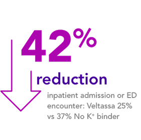 in inpatient admissions or ED visits compared to patients who did not receive Veltassa®4